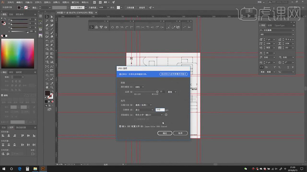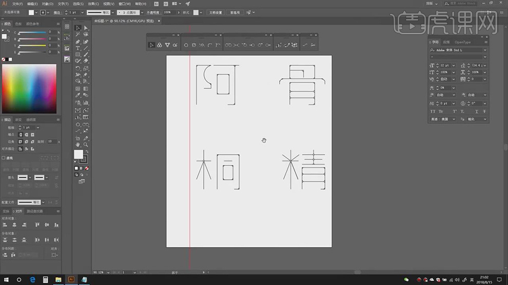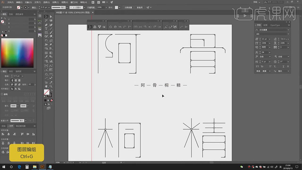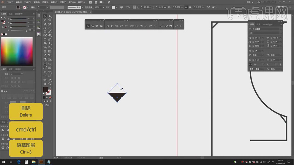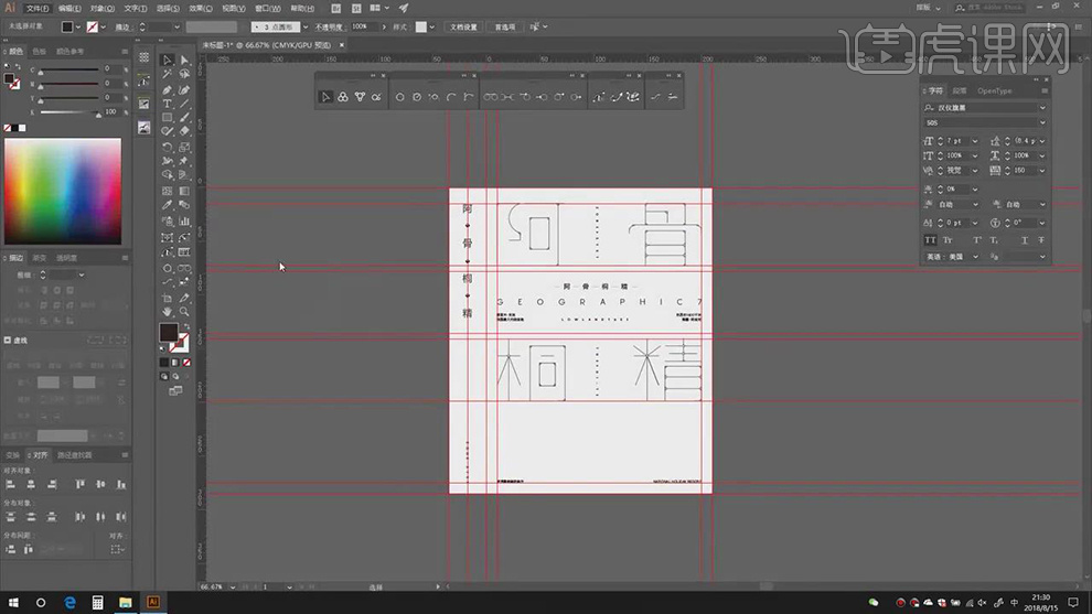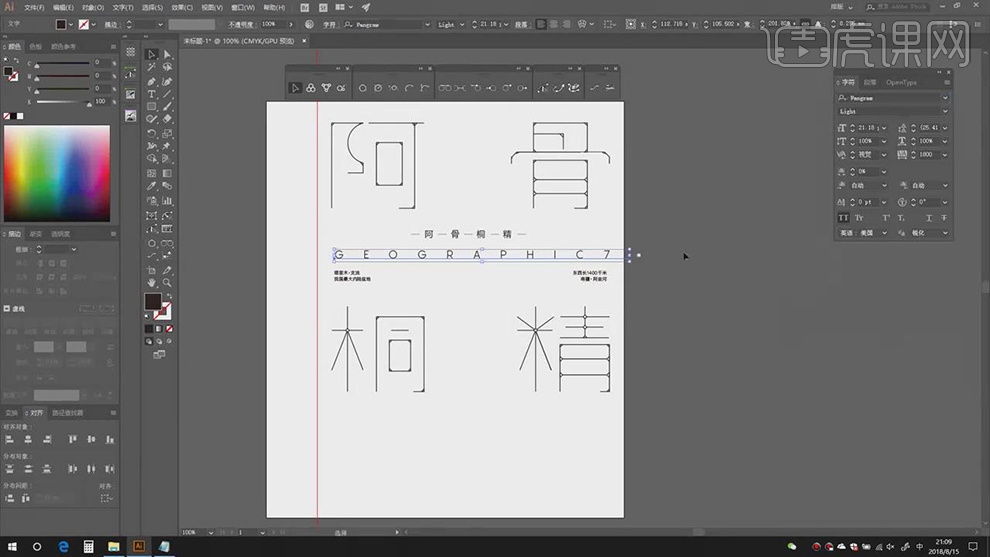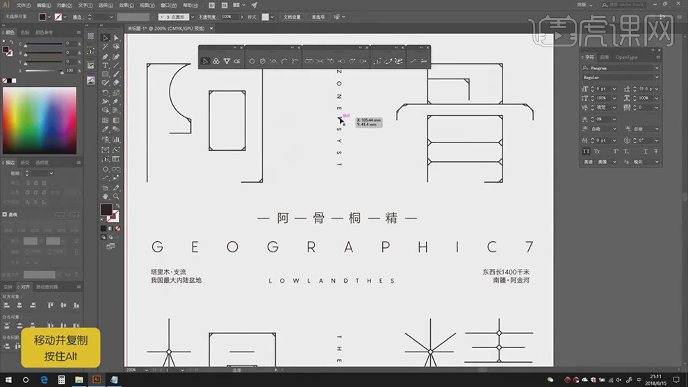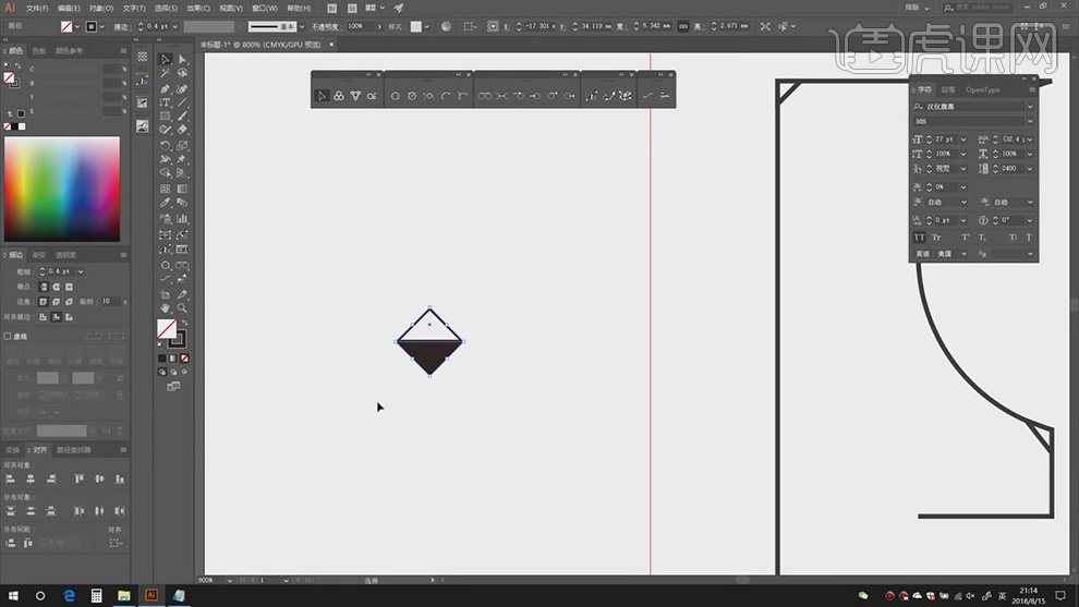 2.【打开】AI,利用【钢笔东西】,点击【连集】,【Ctrl+T】调整素材大小,进行【删除】。调整【字符】参数,【图层模式】变暗,具体如图示。打开【素材】,勾选【对齐】点,调整【大小】取【】?