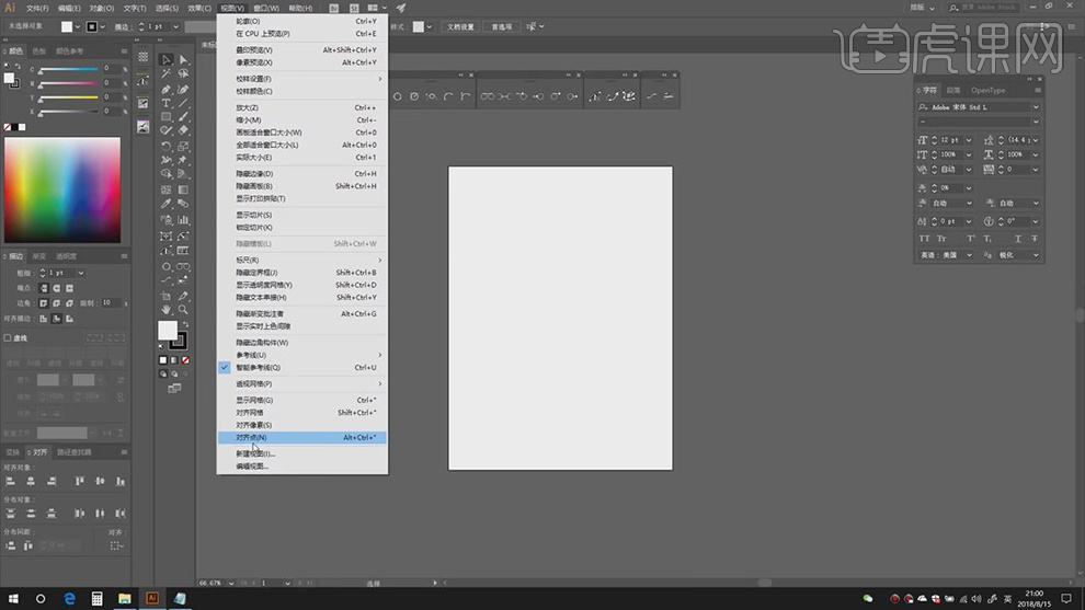 9.选择【下部门】,【视图】打消勾选【对齐像素】,具体如图示。