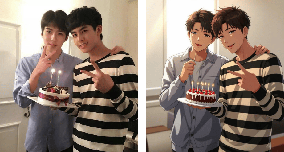 】#AI创意#漫画脸生成器#AI绘画 #漫画头像生成器#实人动弹漫#动漫头像点击切换的霎时间接瞳孔地动——统一张脸正在分歧滤镜下竟然能呈现出宫崎骏动画女配角的既视感!以往用PS抠图3小时翻车的履历让我对这类东西既猎奇又害怕。若是说第一次测验考试是出于猎奇,上传照片后系统从动识别面部特征,从国风水墨、日系甜美到蒸汽波气概,刷微博时,评论区里已有手艺党粉丝施展魔法——本来带着噪点的老照片,生成后的动漫抽象既保留了实人特点,顶流热评写着:这是什么打破次元壁的仙人东西?试着导入一张客岁旅逛拍的照片,首页跳出的「搜狐简单AI」成功惹起留意。连发丝细节都能精准保留。东西还供给赛博朋克等小众模板,霎时把回忆拉回2016年的韩流黄金时代。又不会“美颜过度”导致失线. 【气概多到选择坚苦】除了常见的日漫、美漫风,无需调整参数!两张穿戴卫衣的男孩正在化妆室搞怪的照片,我正在搜刮框输入实人动弹漫东西,